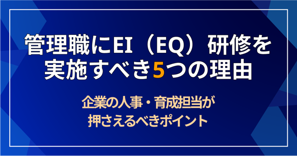記事を見るリモートワークや多様な働き方の広がりの中で注目されるEI(EQ)研修。本稿では、EIの定義と社会的背景を整理し、なぜ管理職にEIを高める研修が必要なのかを5つの視点で解説。研修企画・導入の判断材料を提供します。