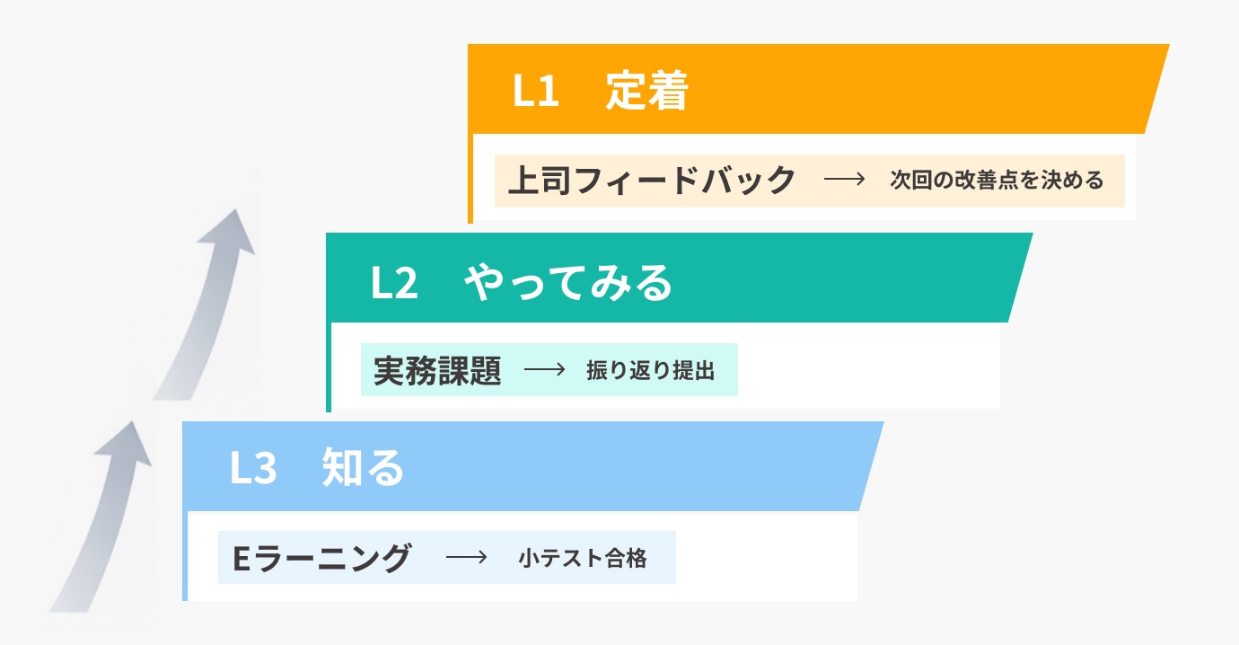 事後 | eラーニング+上司 | 定着・習慣化 | 振り返り/上司コメント |