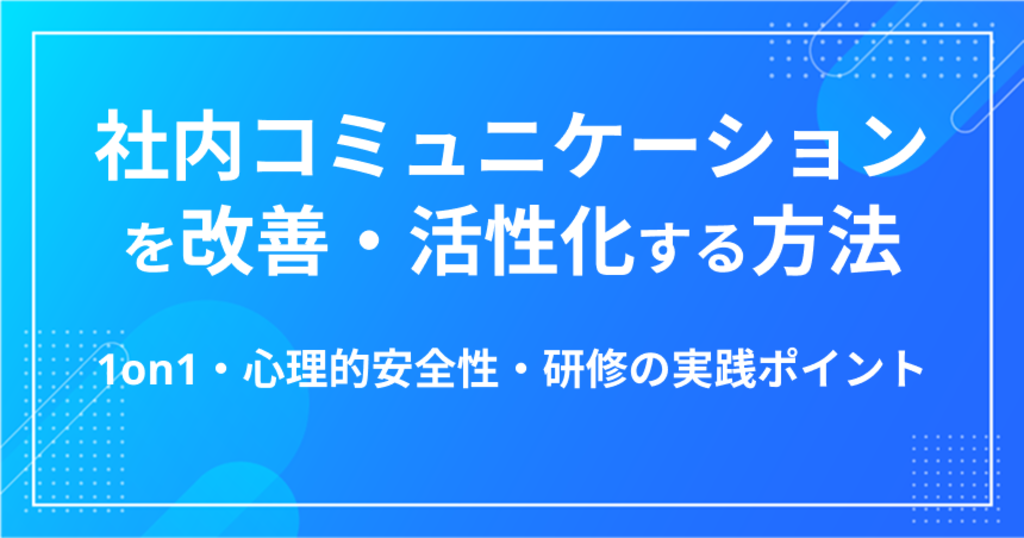 社内コミュニケーションを改善・活性化する方法|1on1・心理的安全性・研修の実践ポイント