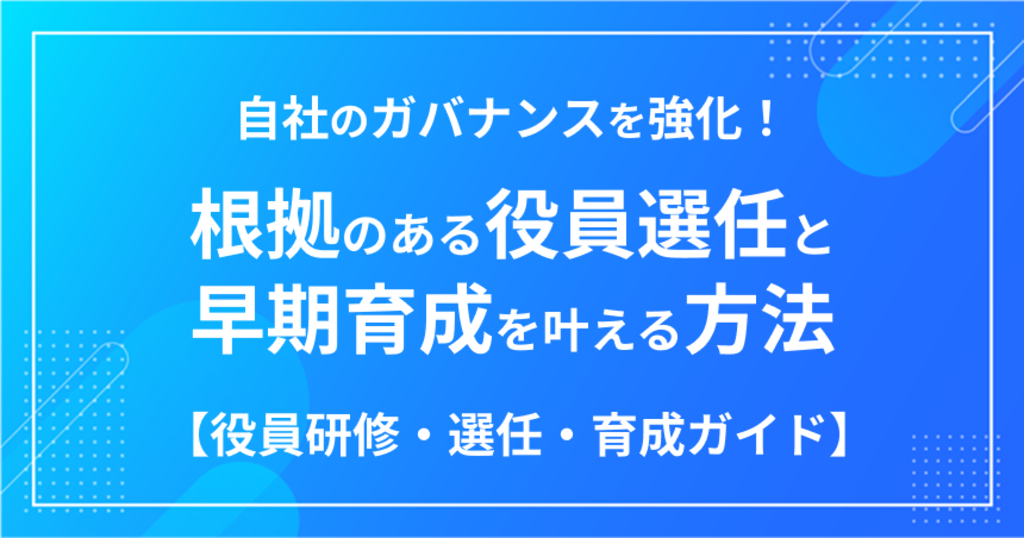 記事を見る上場企業の人事・ガバナンスご担当必見! 役員の資質をどう見極め、どのように育てるか?ガバナンス強化のカギは「役員の資質」と「選任・育成の仕組み」にあります。本記事では、役員選任・育成に使える具体的ソリューションをご紹介します。